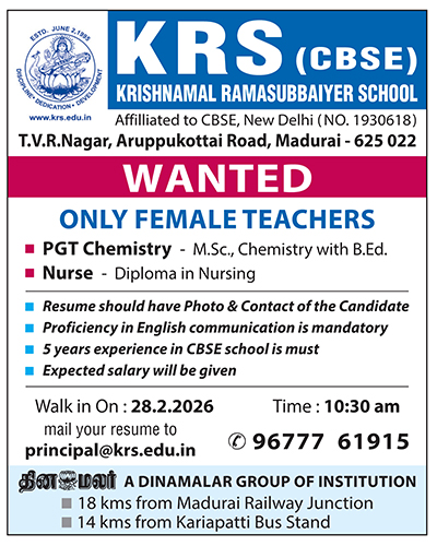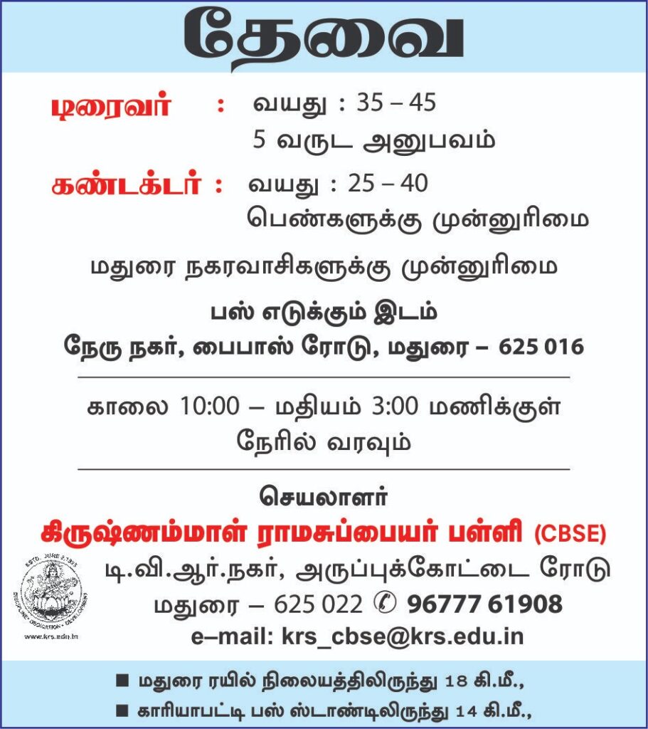 TVR Nagar, Aruppukottai Road, Madurai – 625022, Tamil Nadu.